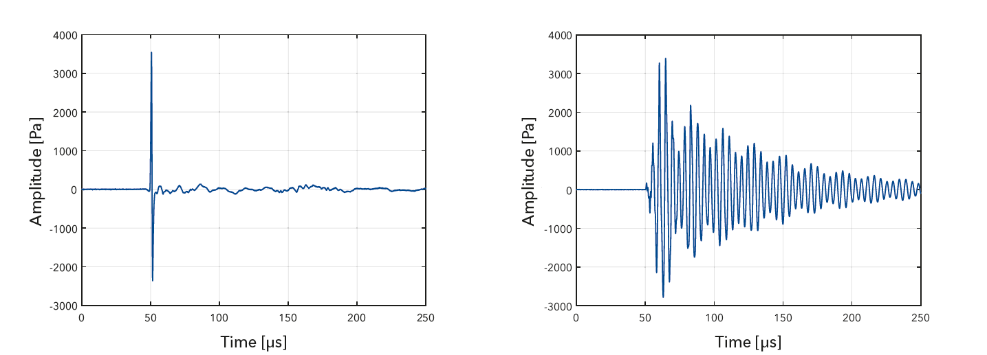 热声发射器的脉冲响应 vs 压电发射器的脉冲响应
